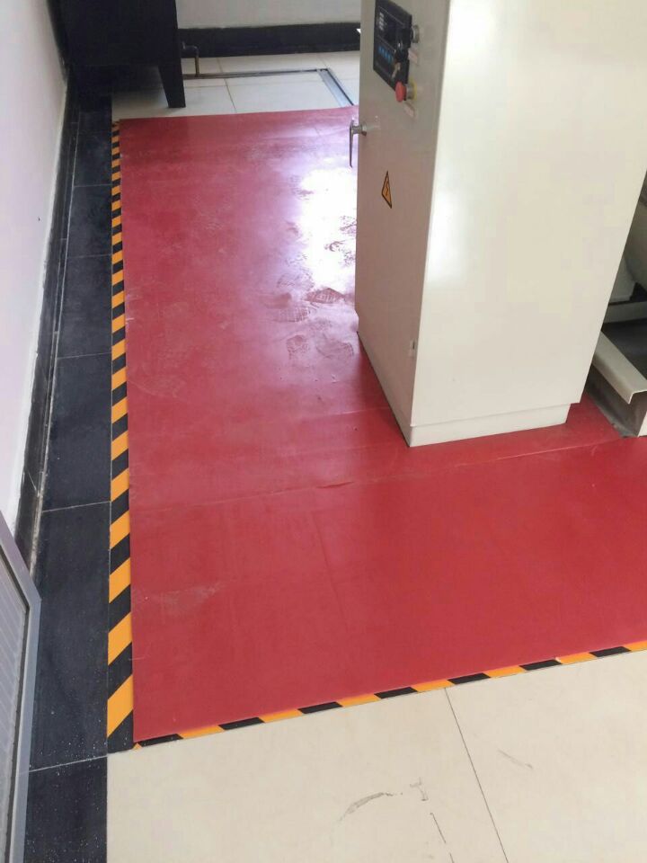 3、黑色絕緣膠墊普通地板磚地面,可以通過(guò)黃黑絕緣膠帶(絕緣漆)或反光膠帶進(jìn)行固定,看起來(lái)層次分明,整體風(fēng)格有很大的提升,如下圖: