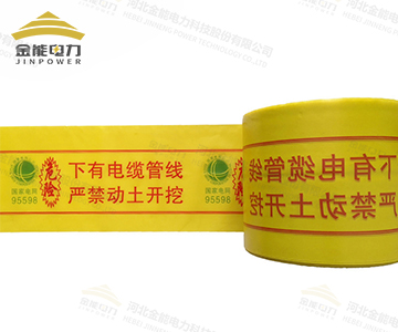 3、警示帶分為普通警示帶和可探測警示帶,可探測警示帶中間夾層有一次鋁箔,寬度約為5-8cm,鋪設后,在距離地面10公分左右的高度用金屬探測儀則可以探測到警示帶的走向,即可知管道的走向。可根據用戶需要定制不同尺寸及印自定義的LOGO文字等。